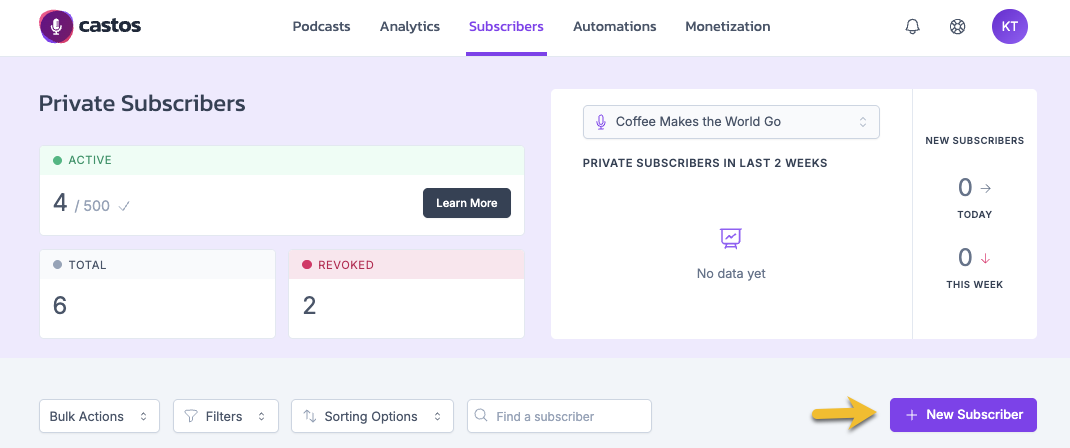 New subscribers will receive an email from Castos with their unique private RSS feed, click here for more information on how to manage that email.